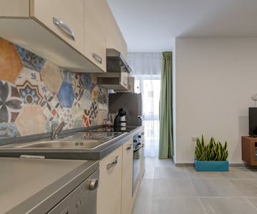 Welcome to Tritoni Marina/Cameron Suites in Gzira, where luxury meets convenience in our One Bedroom Suite with Balcony. This elegant suite offers a spacious and comfortable retreat for your stay in Malta. Step onto your private balcony and soak in breathtaking views of the surrounding area while enjoying a morning coffee or evening cocktail. Inside, you'll find a well-appointed kitchenette, perfect for preparing meals at your leisure, and a convenient washing machine for added convenience during your stay. With a separate bedroom for privacy and a cozy living area for relaxation, our One Bedroom Suite with Balcony provides the perfect blend of comfort and functionality in the heart of Gzira.