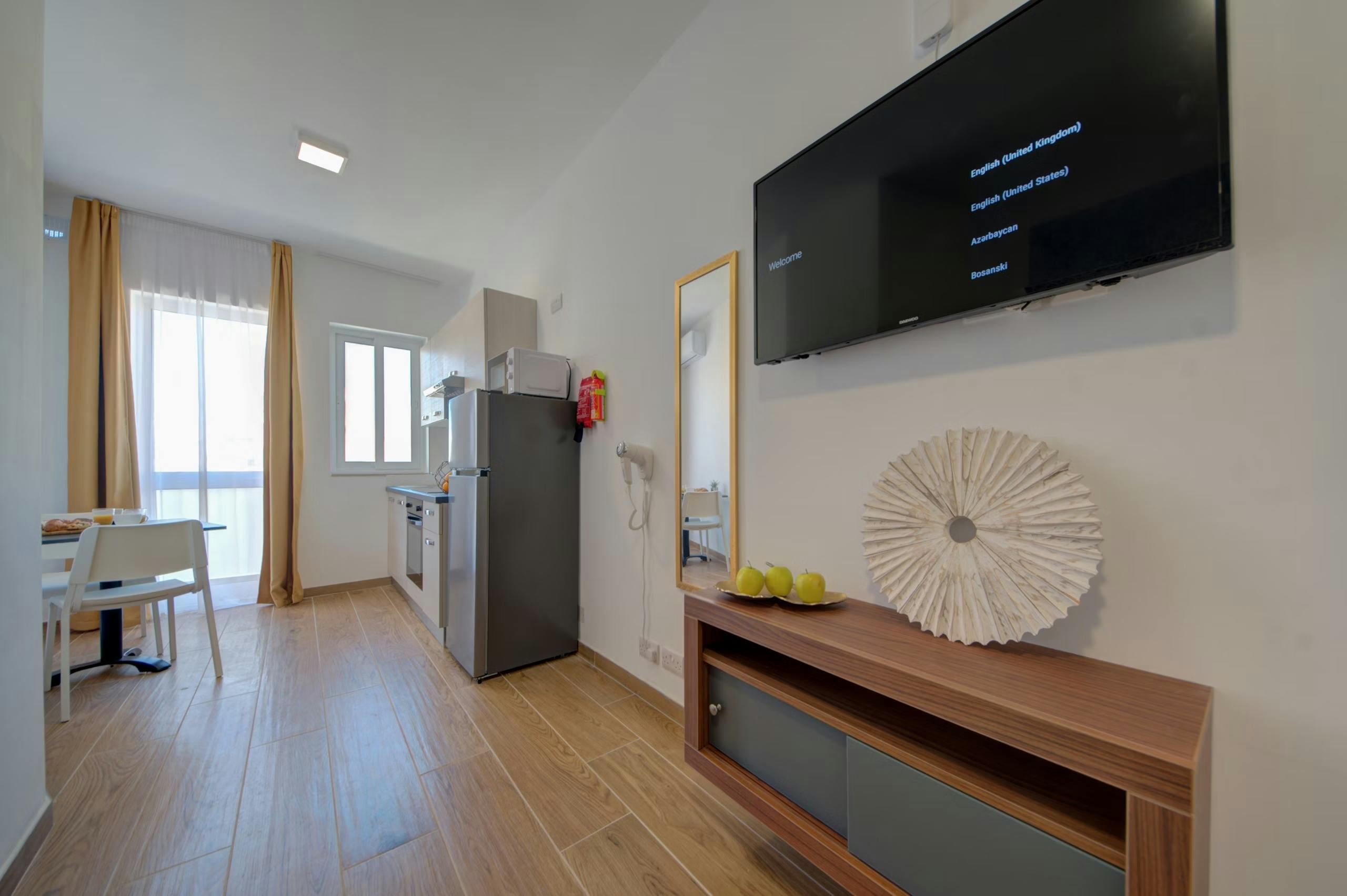 Welcome to Tritoni Marina Suites in Gzira, where convenience meets comfort. Our Standard Studio with Balcony and Kitchenette offers the perfect blend of functionality and relaxation for your stay in Malta. Ideal for solo travelers or couples, these studios feature a cozy bed, a modern ensuite bathroom, and a fully equipped kitchenette, allowing you to prepare your own meals at your convenience. Step out onto your private balcony while savoring a morning coffee or evening cocktail. Whether you're here for business or leisure, our Standard Studio provides a comfortable and inviting retreat in the heart of Gzira.