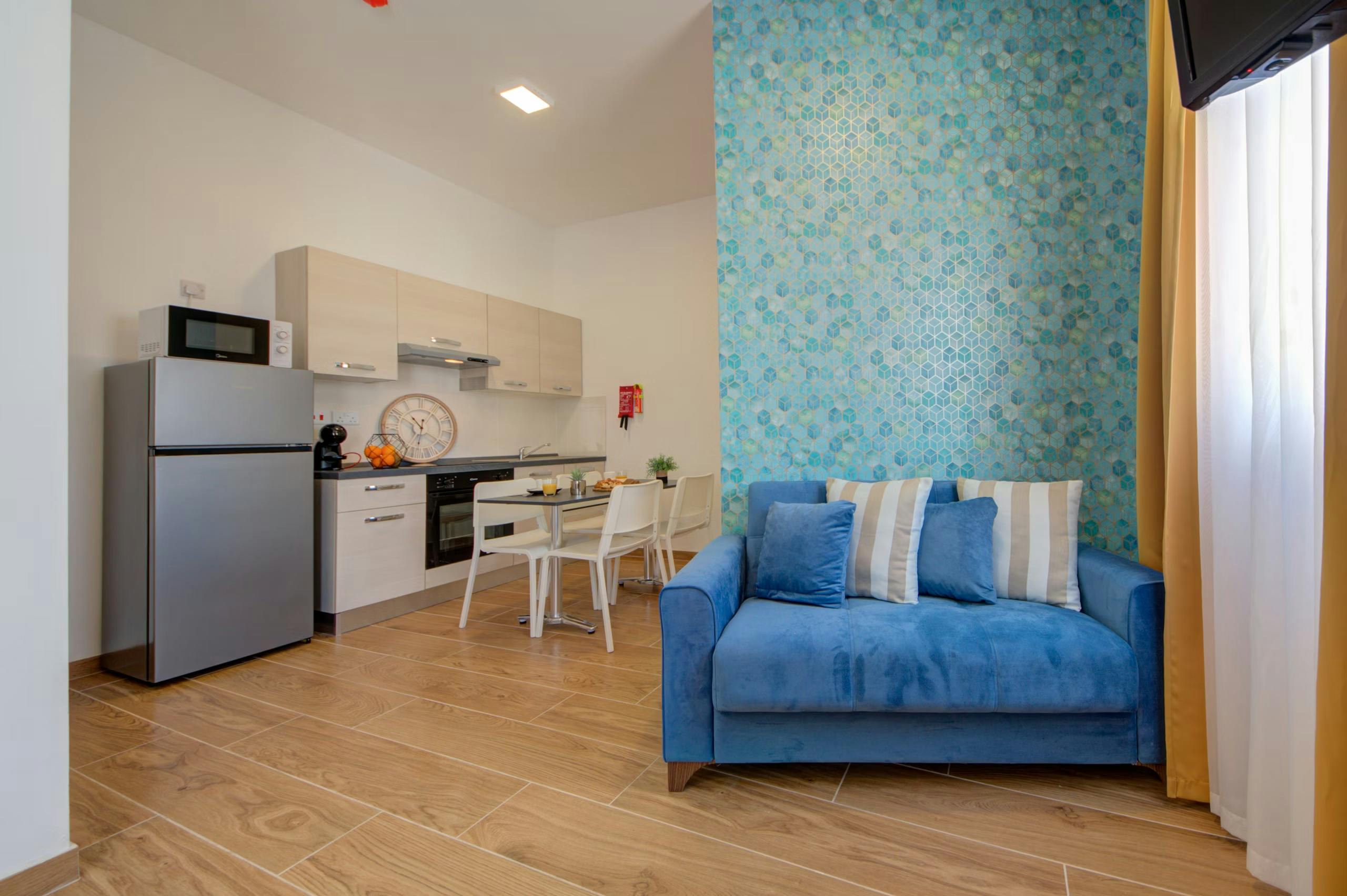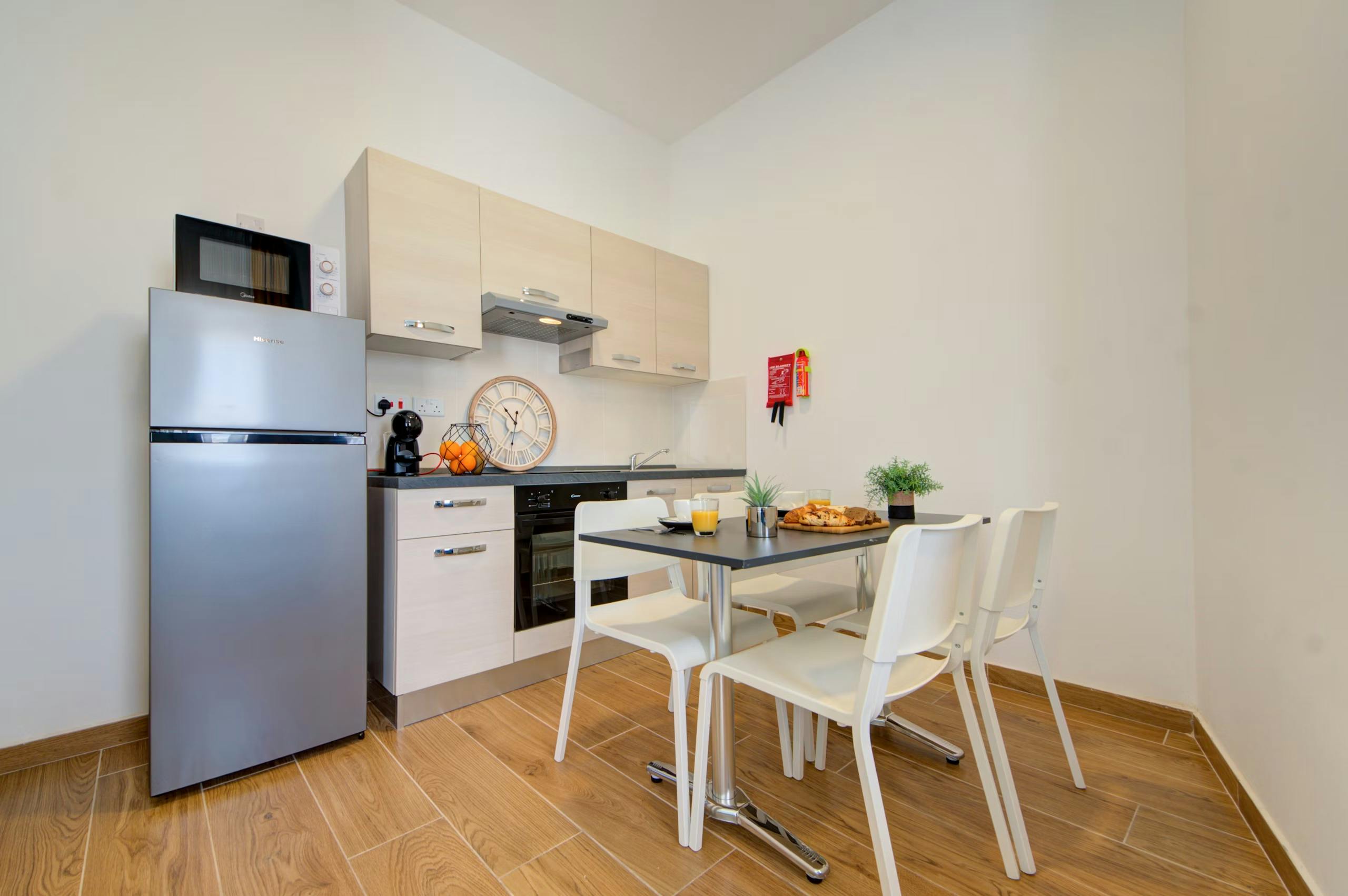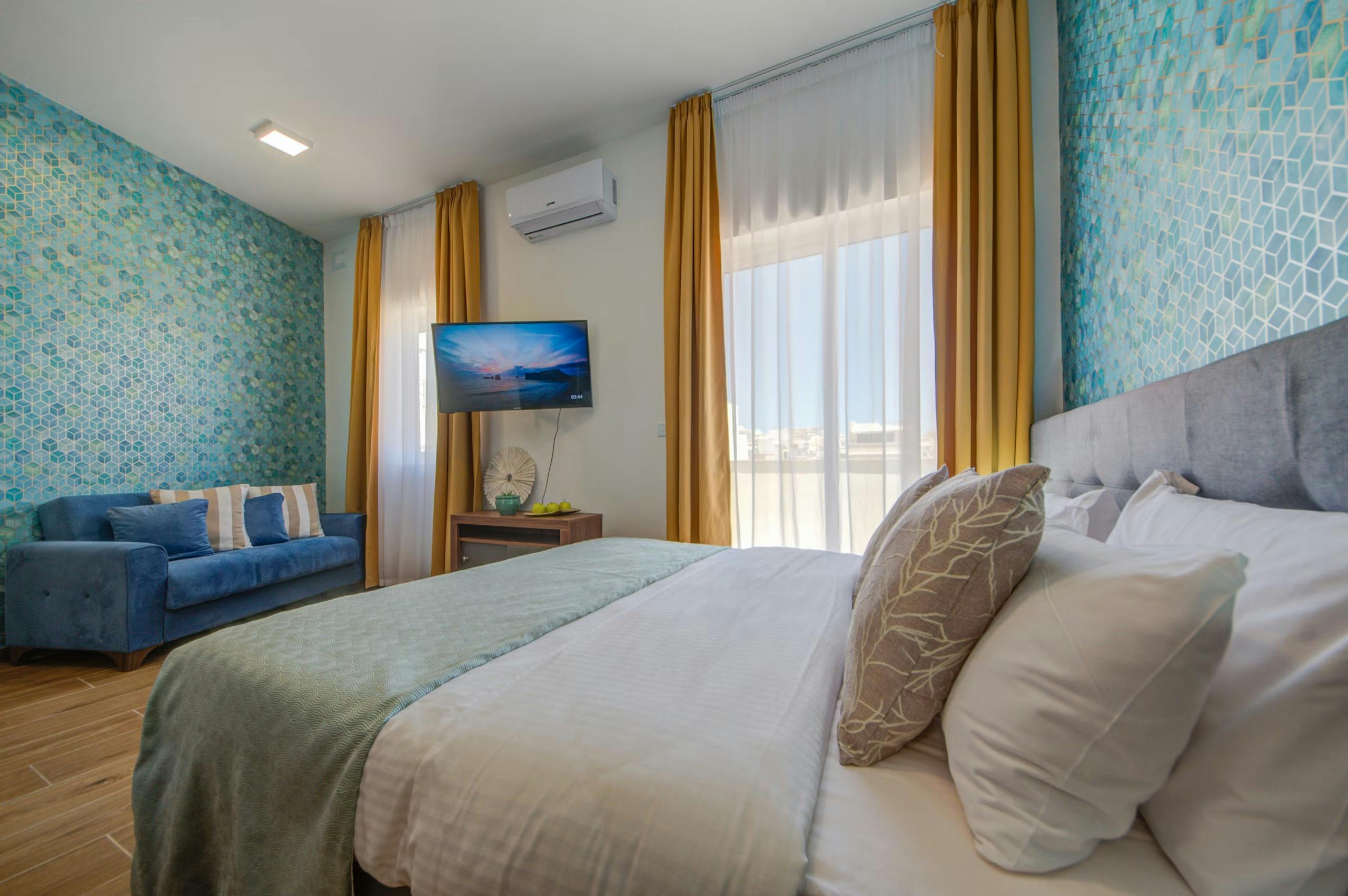 Experience unparalleled Design and convenience in our Deluxe Suite with Balcony, Kitchenette, and Washing Machine at Tritoni Marina Suites in Gzira. Designed for the discerning traveler seeking both comfort and functionality, these suites offer a spacious and elegantly appointed living space. Relax in style in a plush bed, refresh in the modern ensuite bathroom, and prepare meals with ease in the fully equipped kitchenette. Additionally, enjoy the added convenience of a washing machine, allowing you to maintain your wardrobe effortlessly during your stay. Step out onto your private balcony while enjoying a moment of tranquility. Whether you're here for business or leisure, our Deluxe Suite provides the ultimate retreat in Gzira, where luxury meets practicality.